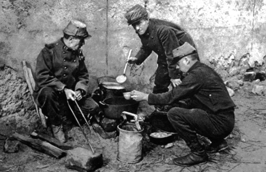 Французские солдаты готовят еду. Фото времен Первой Мировой войны.