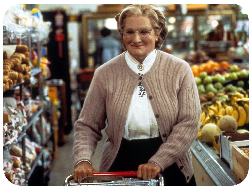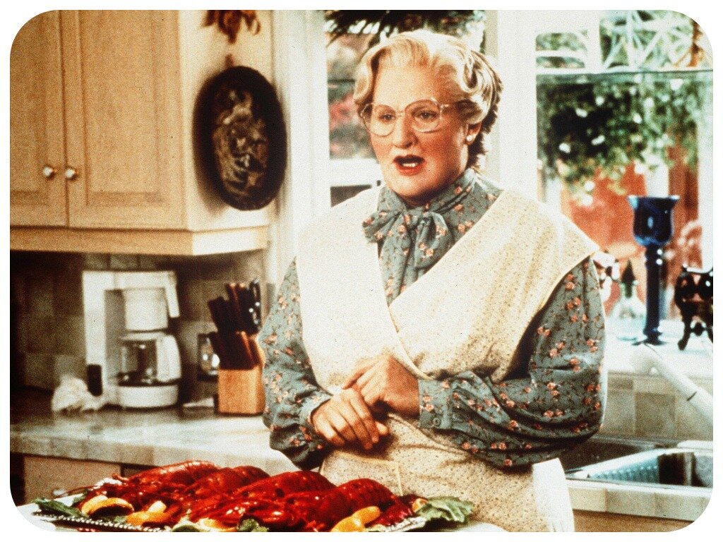 По сюжету фильма непутевый отец решает сблизиться со своими детьми, и переодевается добродушной экономкой миссис Даутфайр. Именно это и отталкивало многих известных актеров — обилие грима и необходимость играть противоположный пол, что в общем-то довольно сложно.