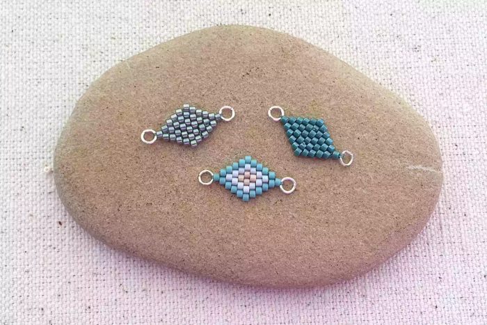 Плетение ромбов из бисера — это отличный способ освоить технику добавления и уменьшения кирпичного стежка. Несколько таких ромбиков можно затем соединить с помощью колец в браслет или ожерелье. Также их можно применять в качестве соединительных элементов в любом украшении или подвешивать к швензам, создавая замечательные серьги.