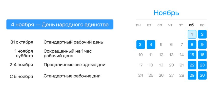 Как работаем и отдыхаем в ноябре 2025 года: кратко