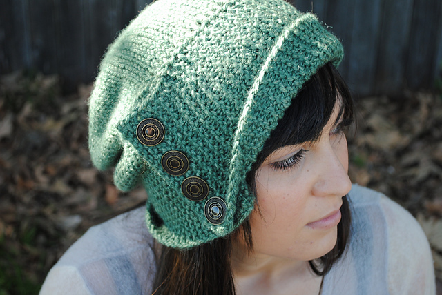 Спрячьте концы и пришейте пуговицы через обе детали, как показано на фото. Можно одну пуговицу пришить на макушку шапки. Отпарьте шапочку, придавая ей нужную форму.