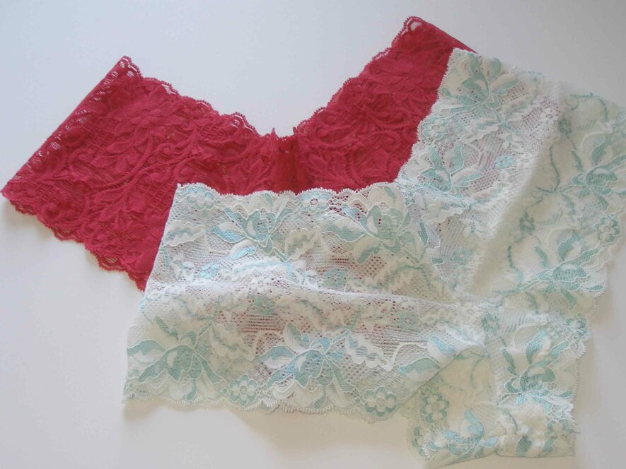 1. Эластичное кружево с готовым краем с обеих сторон шириной 10-16 см. Более полные дамы могут предпочесть более широкое кружево, а миниатюрные — более узкое. Но мы все любим разные стили, так что окончательный выбор зависит от ваших предпочтений;