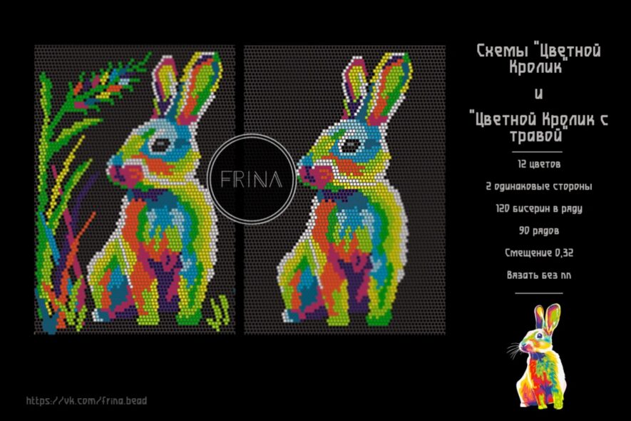 Для всех любителей вязания с бисером, в группе Frina — схемы для вязания с бисером в настоящее время проводится акция, и есть шанс получить бесплатно схему с символом грядущего года — кроликом.