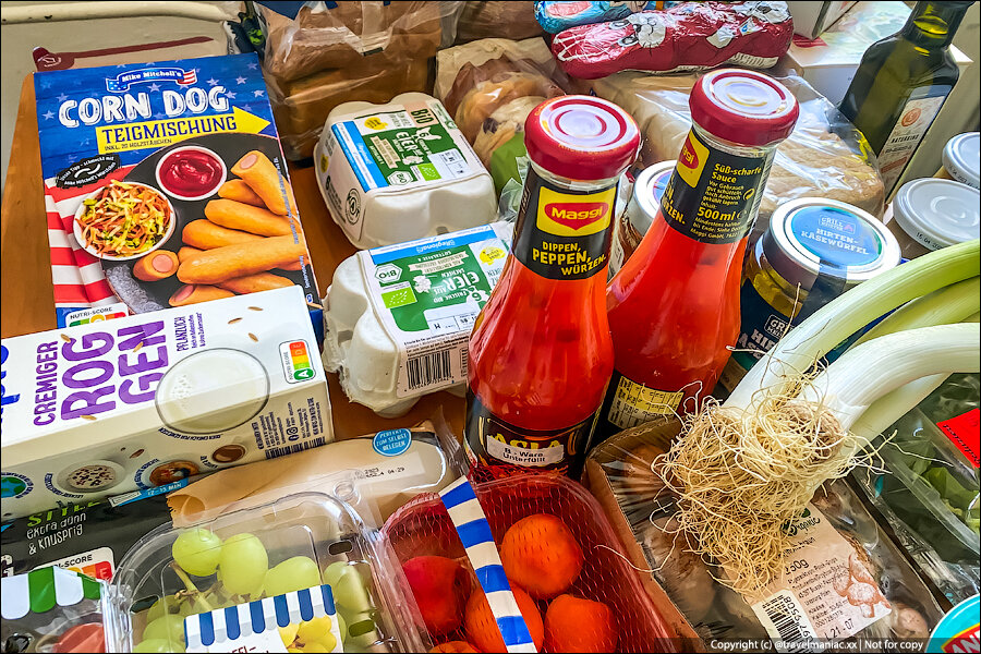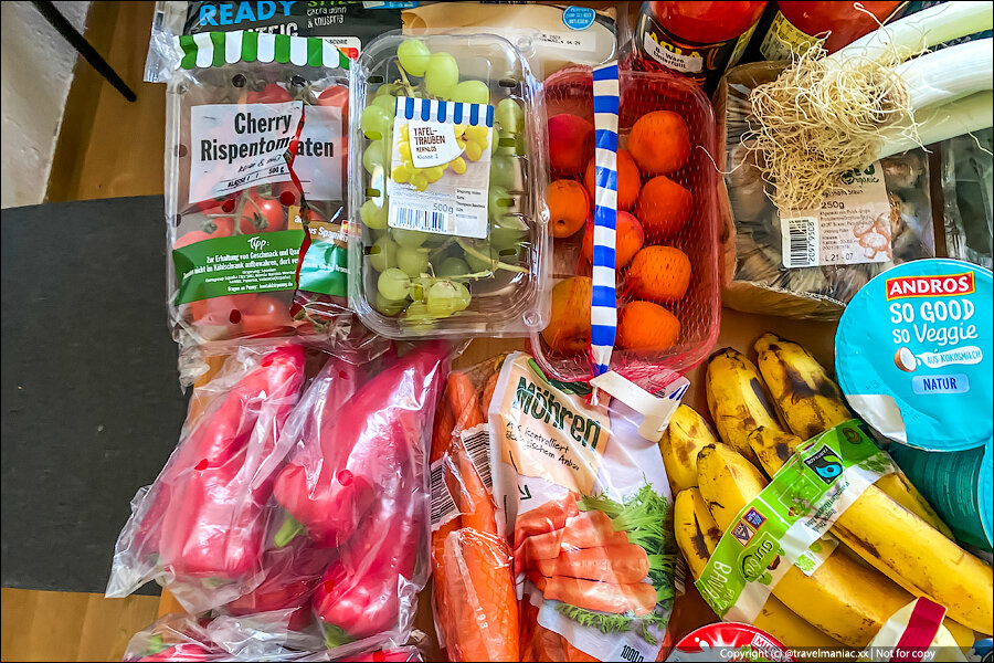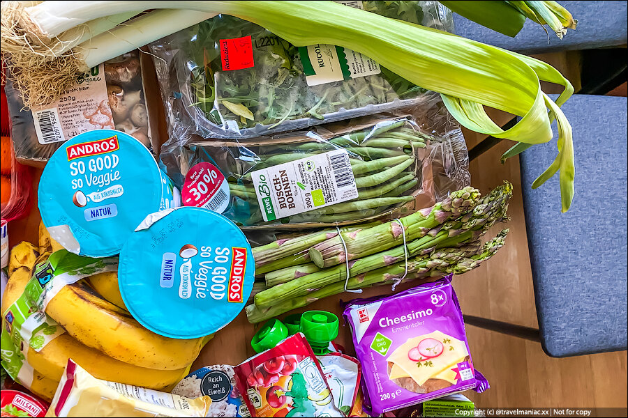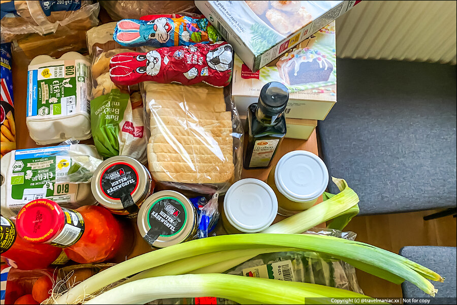 Итак, на фото огромная корзина продуктов, которые вчера закупили мои знакомые. Они уже какое-то время живут с детьми в Германии, получая пособие и находясь в программе социальной поддержки малоимущего населения.