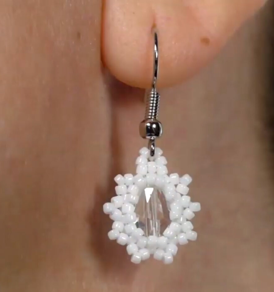 Пошаговая инструкция по созданию белых серег из бисера и бусин своими руками.