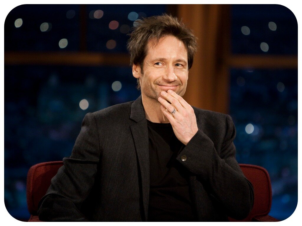 В таком виде актер изображал серьезного агента ФБР. Невозмутимость Духовны и общая странность происходящего подкупили режиссера и роль досталась именно ему.