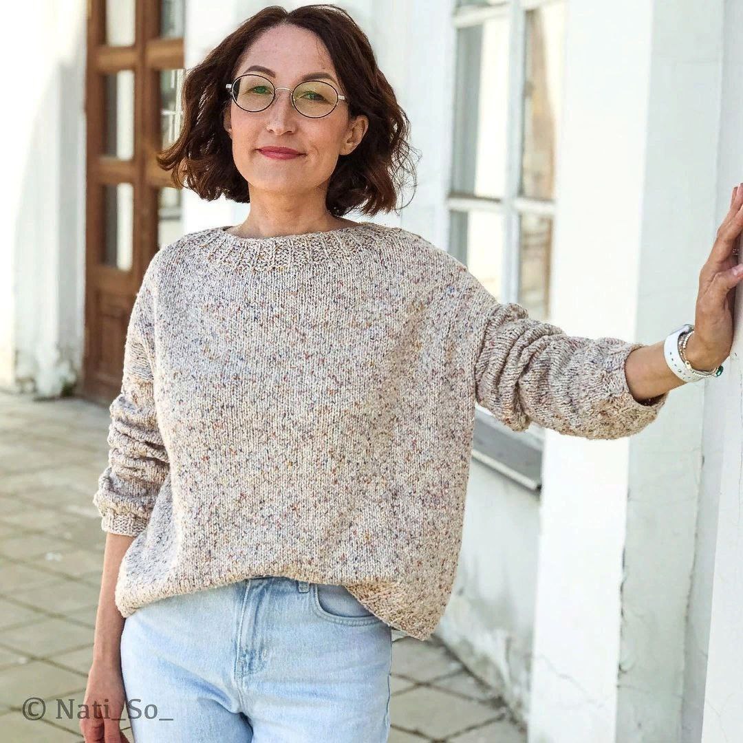 Автор nati_so_ Джемпер без швов, выполненный снизу вверх. Спущенное плечо. Горловина сделана укороченными рядами.⠀