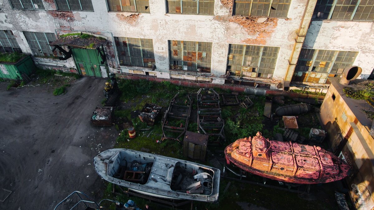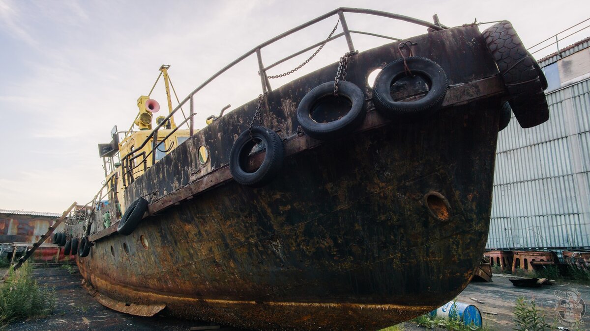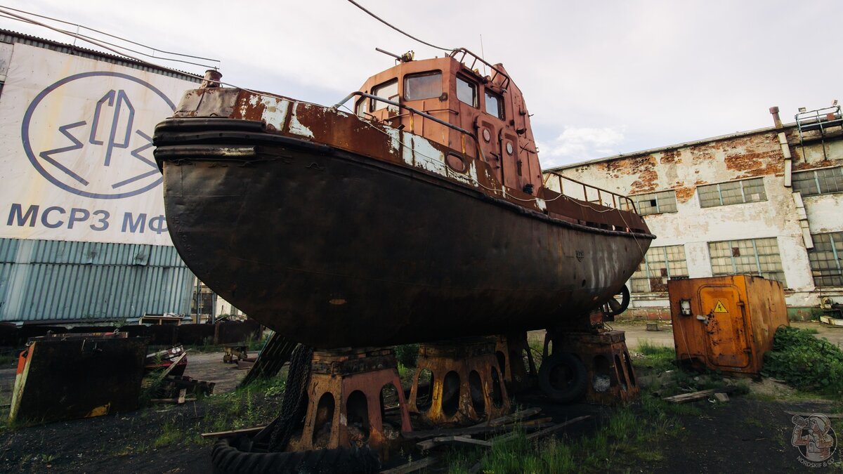 Невысокий старичок скрывает за собой целое промышленное предприятие. Почти сразу по пути попадаются различные плавсредства, преимущественно, небольших габаритов. Некоторые из них находятся в плачевном состоянии и, скорее, всего играют роль хлама, который жалко выбрасывать и который годами копится на импровизированном «балконе» или «кладовке» судоремонтного завода.