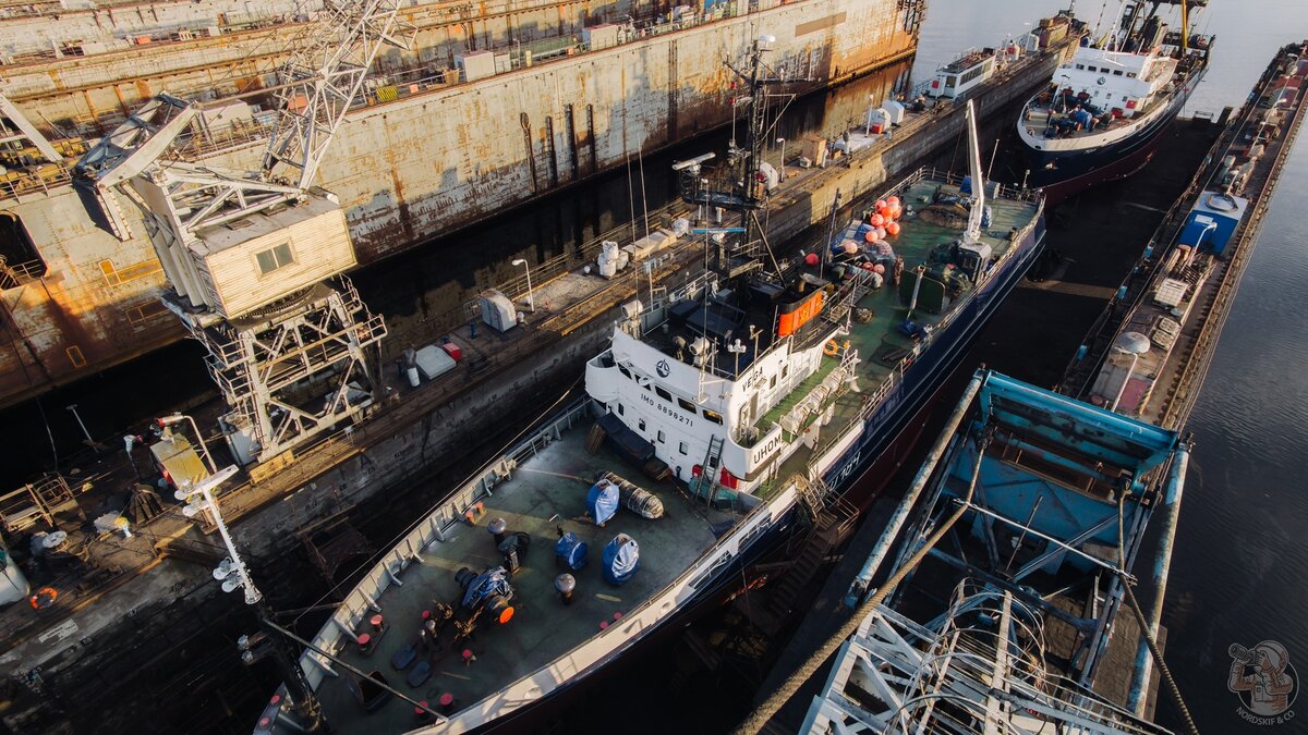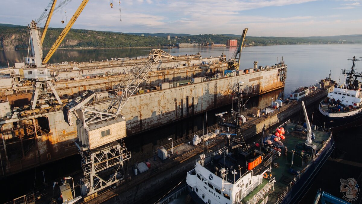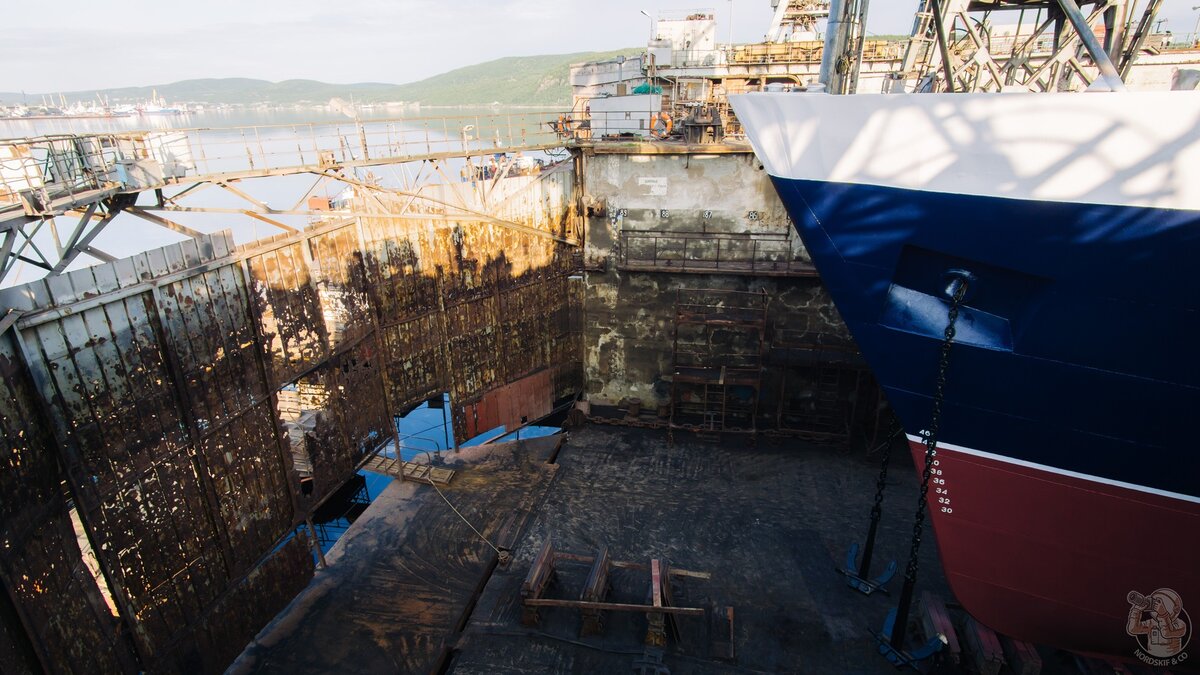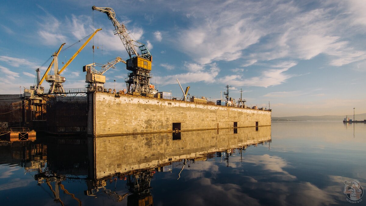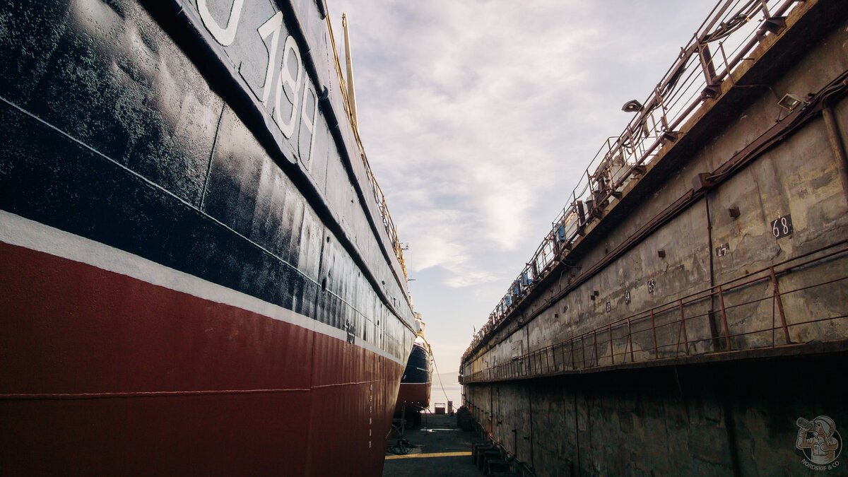Перед тем как покинуть плавучий док, делаю еще кадр. Тот самый ракурс снизу вверх, которые надо было снять в самый первый момент появления около кораблей.