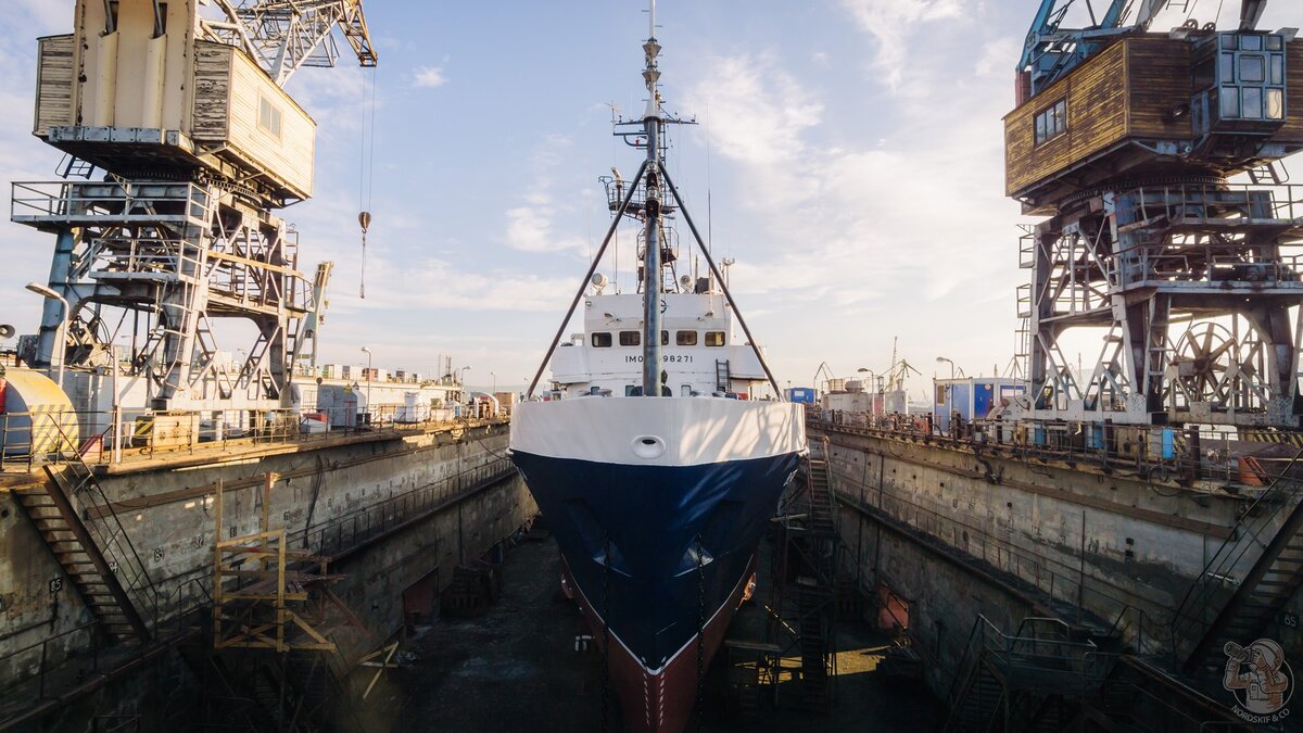 Опьяненный внезапно появившимся ветром со стороны кольского залива, донесшим до меня резкий, но приятный крик чаек и гулкий звук работающих где-то вдалеке «жирафиков», я ненадолго потерял концентрацию и позволил себе насладиться моментом. За эти несколько минут мои товарищи, оставшиеся внизу, ушли чуть дальше и мне пришлось их догонять. Путь до плавучего дока я преодолевал в одиночестве, но при этом получая именно те концентрированные эмоции от прогулки по техногенному ландшафту, какие невозможно получить в компании, вынужденно разделяя эти впечатления с кем-то другим.