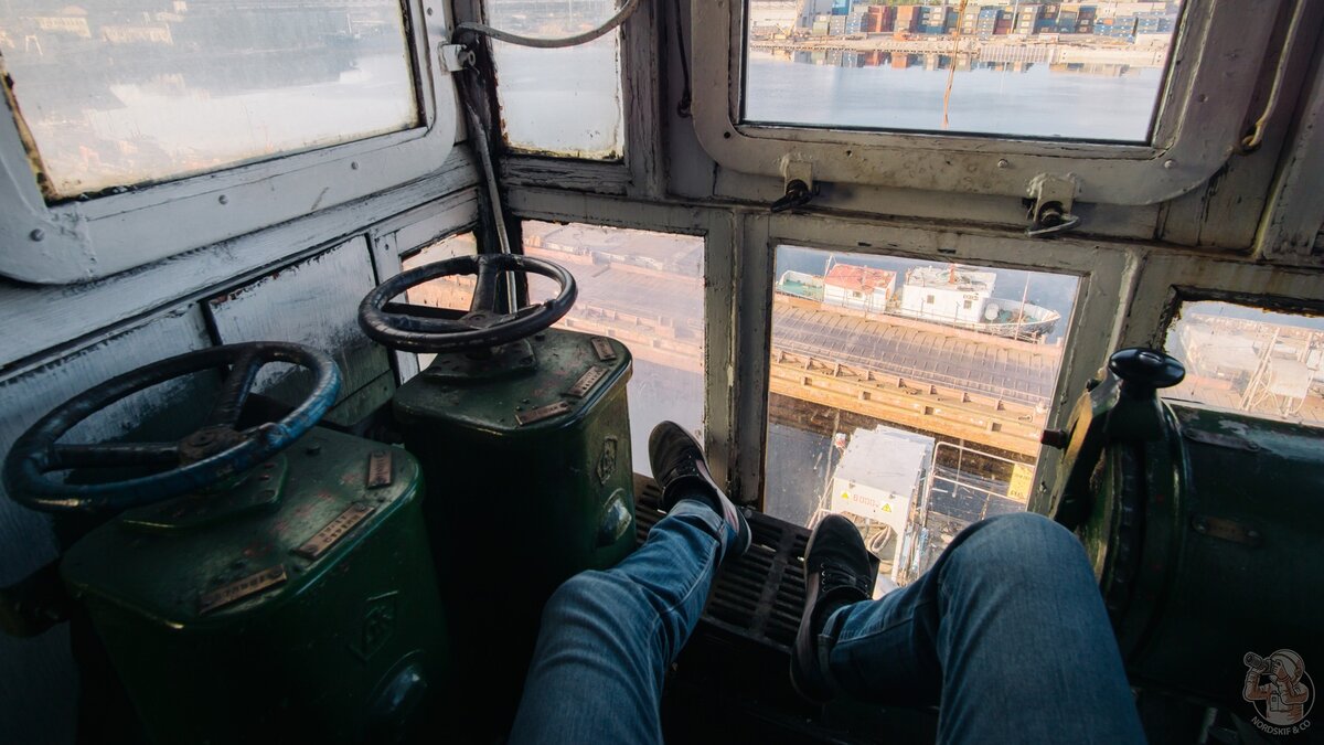 Забравшись на кран я удивился тому, насколько длинным оказался понтон, по которому я шел к доку. Пара сотен метров пролетела как одно мгновение, настолько волнующим было предвкушение скорого достижения цели. С этой точки вид был совсем другим: по одну руку виднелся угольный терминал, работавший круглосуточно, по другую — еще не проснувшийся морской рыбный порт.