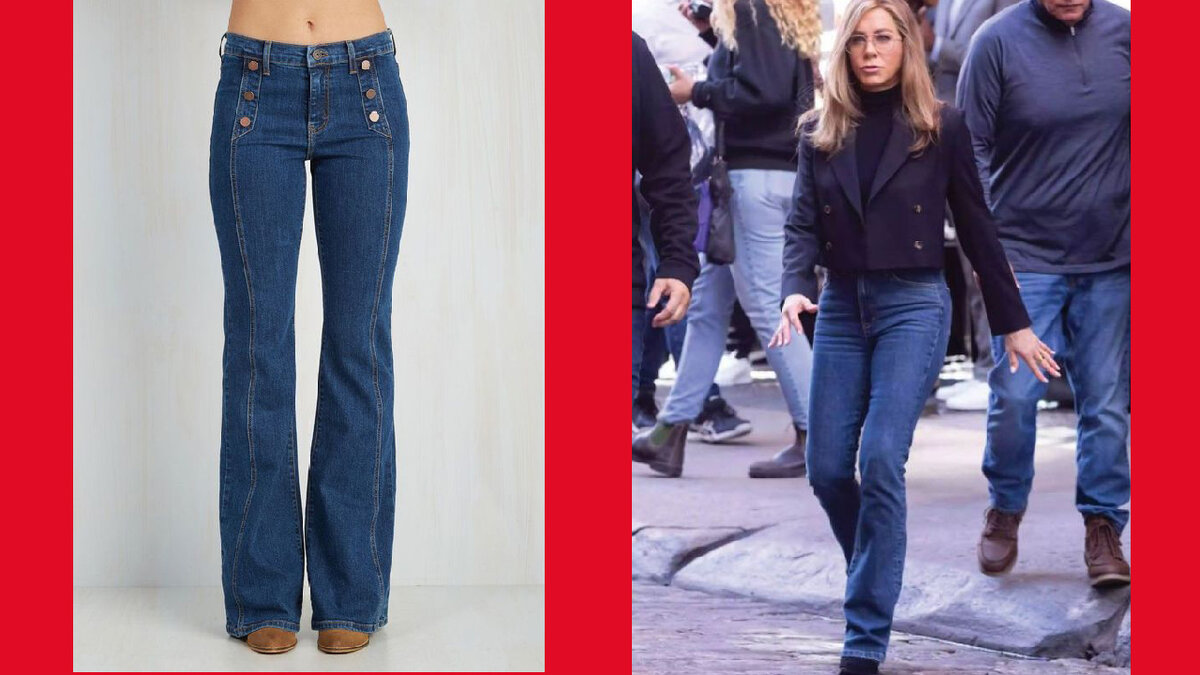 Итак, популярная голливудская актриса Дженнифер Энистон несмотря на то, что обладает подтянутой фигурой, даже эта звезда вынуждена осторожно подбирать себе джинсы. Дело в том, что у актрисы довольно короткие ноги по отношению к телу. Поэтому она выбирает модели с высокой посадкой, чтобы визуально удлинить ноги. А еще предпочитает джинсы темного цвета, так как они делают силуэт более стройным.