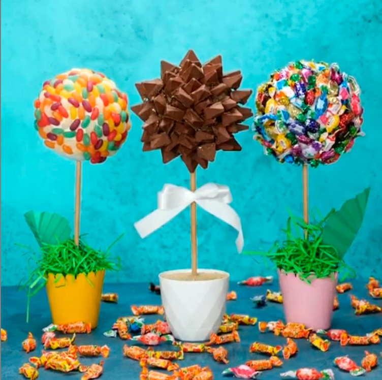 Первоначально топиарийом назывался сад с фигурно подстриженными деревьями и статуями. Позже кто-то предложил создать миниатюрный топиарий в горшке, и эта идея завоевала популярность у мастеров. В настоящее время в интернете можно найти тысячи креативных изображений, которые вдохновляют на создание собственного топиария. Мы решили объединить сладости и искусство и создали сладкий сад с деревьями.