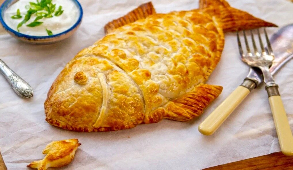 Кулебяка с красной и белой рыбой, приготовленной в соусах, нежными блинчиками и аппетитными дополнениями. Настоящий царский рецепт. Русский шик для вашего праздничного стола.