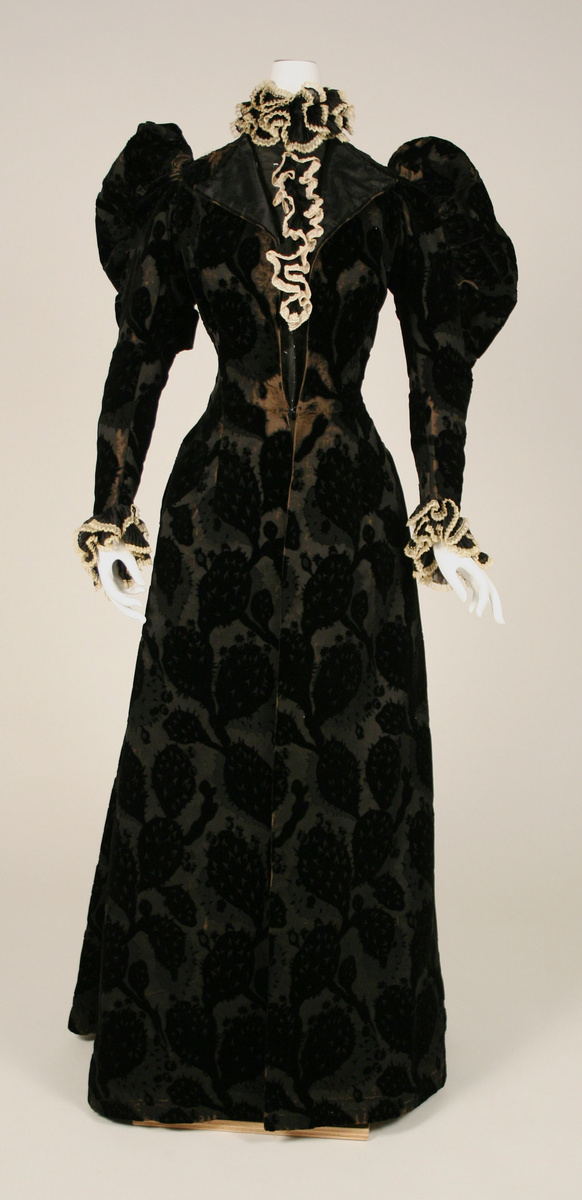 Женский редингот, несмотря на все эти изменения, все еще оставался верным основным чертам кроя, застежке сверху донизу (хотя она уже часто встречалась в однорядном варианте вместо двухрядного), высокому воротнику и пелерине. А вот форма рукава, расположение линии талии, отделка, используемые материалы — все это уже слабо напоминало классические мужские костюмы для верховой езды.