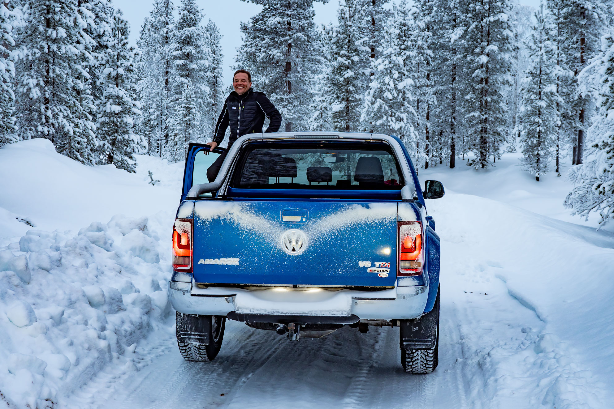 Наша поездка по лесам Лапландии проходила на двух пикапах Volkswagen Amarok разной степени подготовки. Была отличная возможность сравнить "почтистоковый" автомобиль и вышедший из-под пера тюнинг ателье.