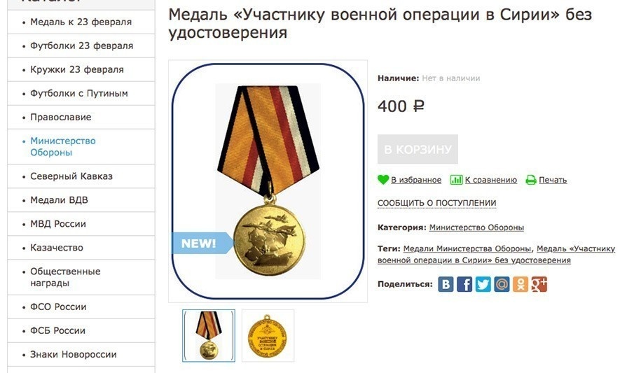 Кстати, награды «За Сирию» можно было приобрести и не выезжая за пределы России, для коллекции, по цене от 400 до 1500 рублей.