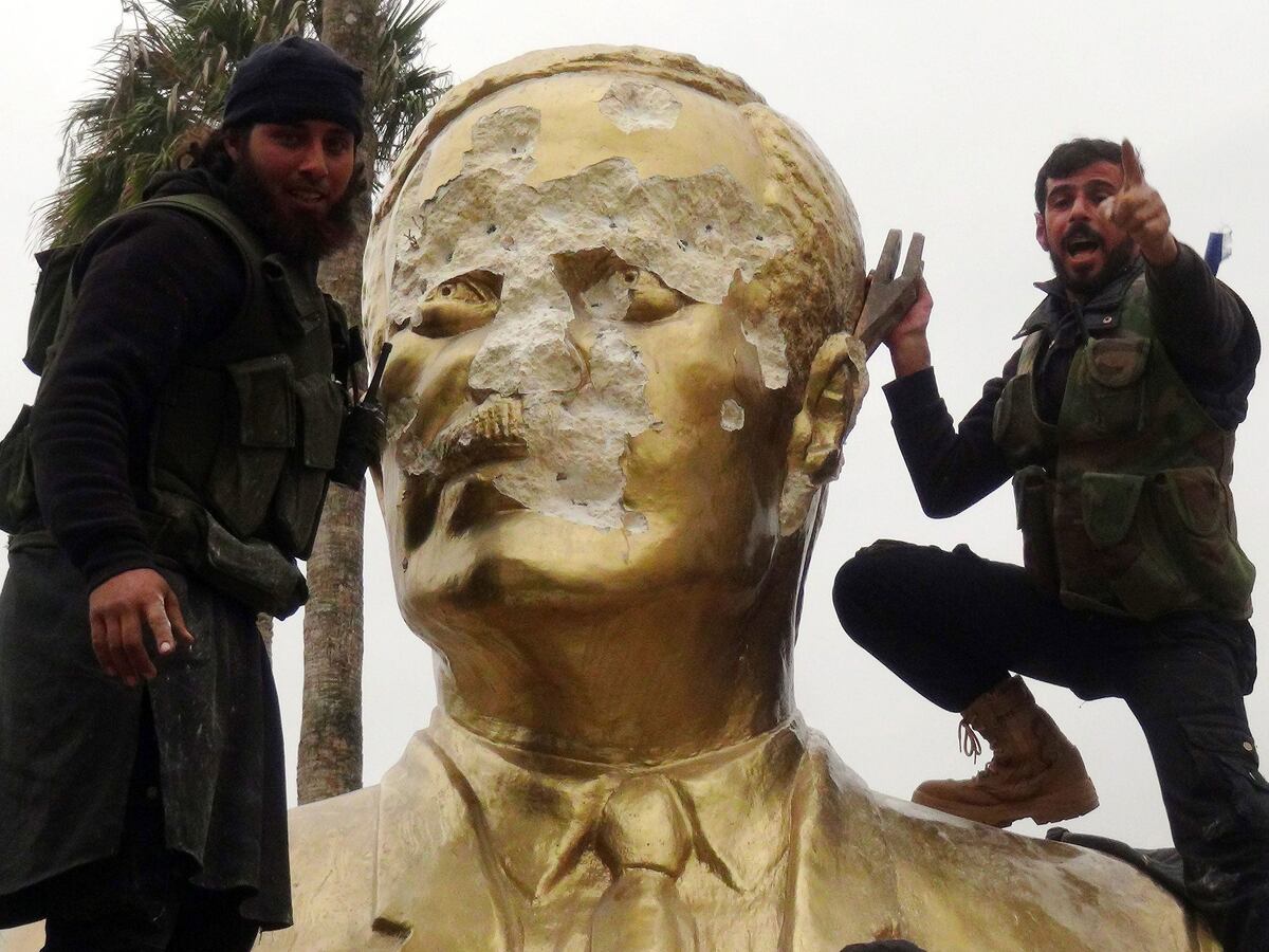 А теперь телеканалы Syria TV и Al Jazeera показывают кадры из города Джарамана на окраине Дамаска, где толпа сбрасывает с постамента бюст Хафеза Асада — отца нации и одновременно действующего президента страны.