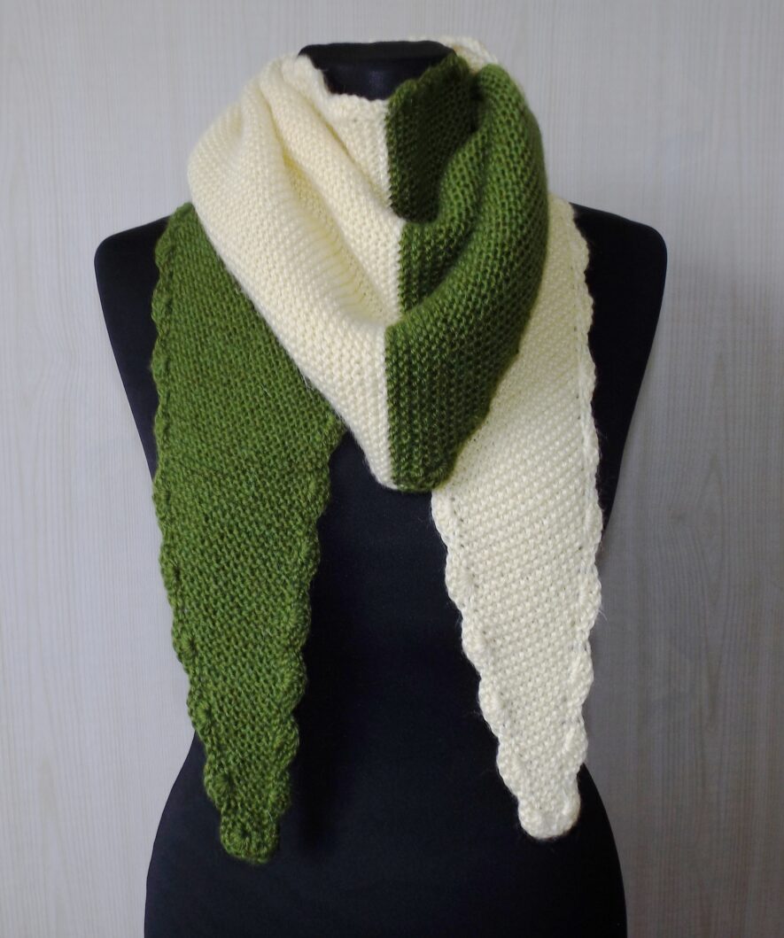 Некоторые предпочитают длинные шарфы, другие выбирают короткие снуды, а третьи отдают предпочтение косынкам-бактусам или вязаным шейным платкам. Существует множество моделей бактусов, которые вяжут как спицами, так и крючком, в самых разных стилях. Особенность нашего бактуса – контрастная пряжа различных цветов, строгая геометрическая форма и симметрия. С этой моделью справится даже начинающая вязальщица.