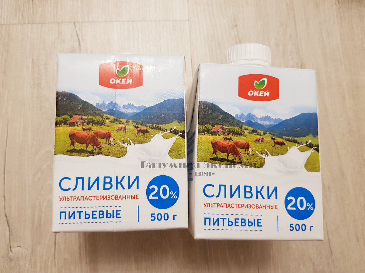 Давно в продаже не было 20% сливок собственной торговой марки, взяла в запасы 2 упаковки по 500 грамм. Предпочитаю коробочки по 200, чтобы на один раз, раньше были и такие. Идут на соус к пасте и крем-супы. Коробка по 128 рублей.