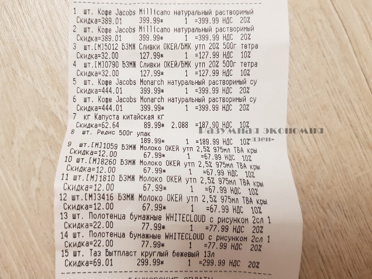 Кажется, что очень мало всего, но здесь только кофе и таз (остался за кадром) на 1900 рублей. На повседневные нужды потратили 380 рублей (овощи), а остальное ушло в запасы.