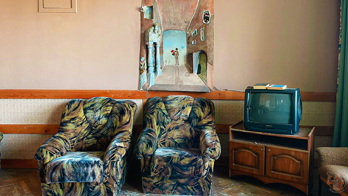 А вот сами номера и различные комнаты отдыха с телевизором и объёмными картинами.