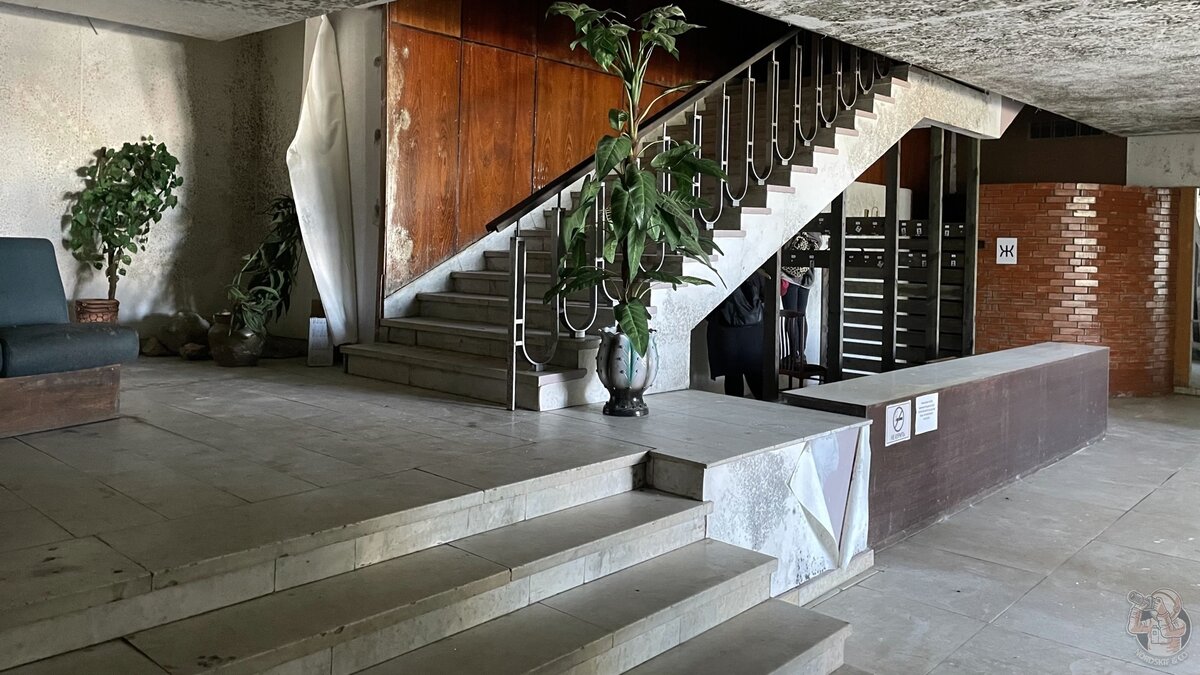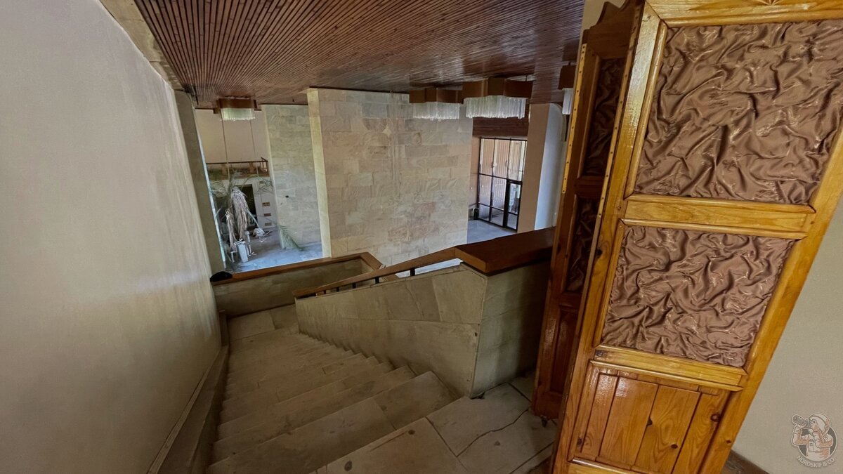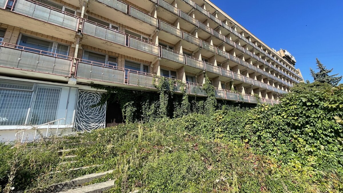 Погуляв по крыше и оценив вид на город сверху, мы пошли на выход. Внизу так нам никто и не встретился, а жаль — не хотелось бы, чтобы вскоре от пансионата с его интерьерами совсем ничего не осталось.