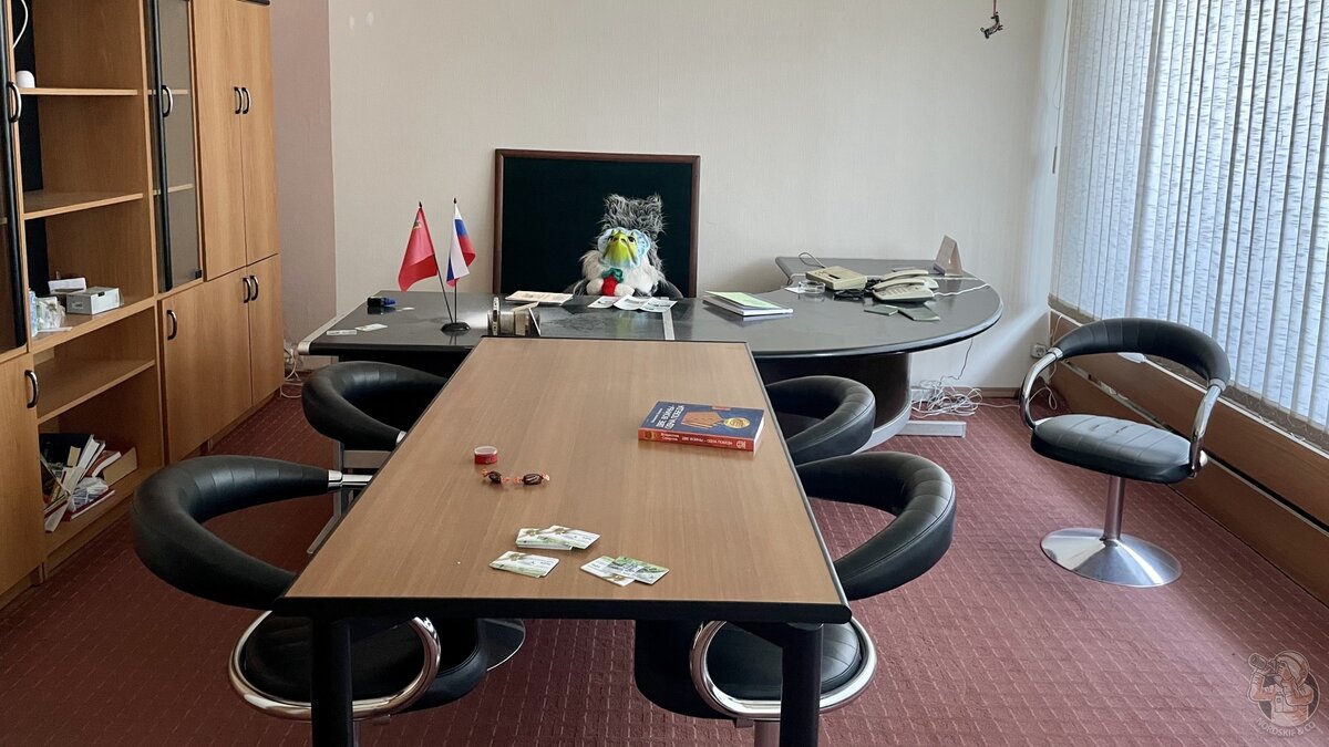 Здесь же находилась и администрация пансионата. Только теперь в роли управляющего сидит большой плюшевый кот. Будем считать, что это из-за его оплошности на одном из столов остались лежать сканы паспортов, принадлежащих, вероятно, бывшим гостям дома отдыха.