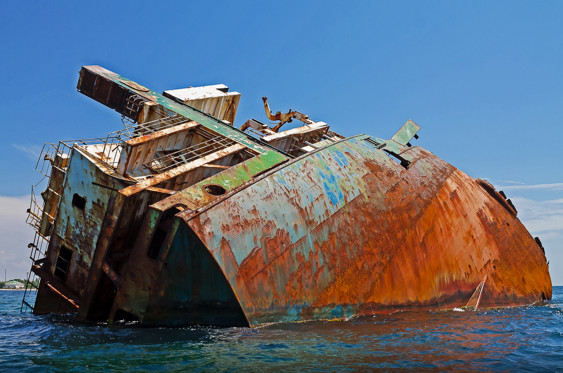 Сначала корабль переломился пополам, и его передняя часть затонула. Заднюю же часть пытались разбирать на металл, потом это дело бросили. Сейчас корма постепенно меняет своего положение, какие-то её элементы отваливаются и тонут, на радость многочисленным дайверам…